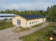 Kulmatontilla Teollisuuskadulla v. 2012 rakennettu puu/betoni runkoinen teollisuushalli. Yhtenäistä hallitilaa, nosto-ovet päädyssä ja sivussa, joten mahdollista tarvittaessa jakaa. Rakennuksen takapäädyssä toimistotila ja wc. Edullinen maalämpö lattialämmityksenä. Oma tontti 1679 m2. Vuokrattu.
