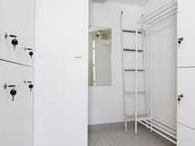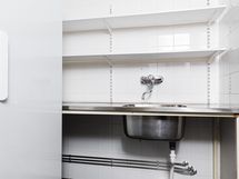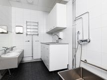 ja pesuallas kaapiston yhteydessä, kaapisto vaatekuivauspatteri (vesikiertoisesti