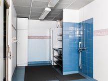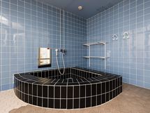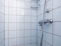 Suihku, kokonaan laatoitettu.