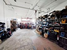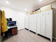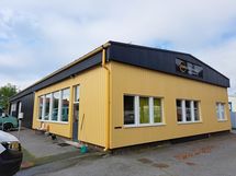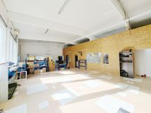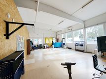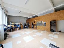 Rakennus jaettavissa useampaan lohkoon. Kahdelle lohkolle asennettuna nosto-ovet. Toisessa päädyssä hyvät sosiaalitilat, keittiö, pesuhuone, sauna jne.