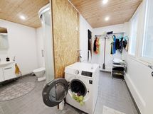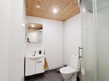 Pesutilojen kuvaus: Suihkukaappi. Varustus: wc-istuin.