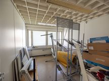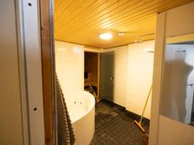 Rakennettu kevyt väliseinä, joka purettavissa helposti, puolet toiminut sosiaalitilana, puolet varastona viimieset 10 vuotta, kunto tyydyttävä, Pintaremontilla oikeen hyvää edustustilaa.