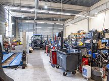 7m korkeaa hallitilaa 1200m2 joka jaettu korjaamo/varasto ( korjaamo 25x16)