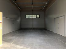 Myydään hyväkuntoinen 5.5m korkea hallitila erinomaisella sijainnilla jossa rakennuslupa isolle 40m2 parvelle.