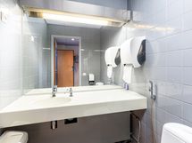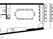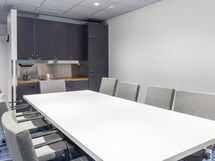 Apukeittiössä on jääviileäkaappi, kaapistot ja työtasot, mikä mahdollistaa sekä pienten tarjoilujen että kokousten järjestämisen helposti. Aitioon kuuluu myös oma wc, joka lisää käytännöllisyyttä ja mukavuutta.