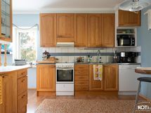 - Keittiön varusteet: Jääkaappi, erillinen pakastin, astianpesukone ja liesituuletin. Liesi: Keraaminen liesi. Työtason materiaali: Laminaatti ja teräs.