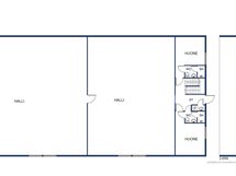 - Pinta-alan peruste: Ei tarkistusmitattu. Pinta-alat saattavat tämän ikäisissä kohteissa (yhtiö rekisteröity ennen 01.01.1992) poiketa olennaisestikin asuinrakennusten nykyisten mittaustapojen ja standardien (SFS 5139) mukaan laskettavasta asuintilojen pinta-alasta. Pinta-ala voi siis olla edellä mainittua pienempi tai suurempi. Hallien yhteenlaskettu kerrosala on 657 m2. Suurempi halli on n.517 m2, joka sisältää n.100m2 suuruisen kaksikerroksisen asunnon. Pienempi halli on n.140 m2. Rakennusten välissä on eristämätön katettu varastotila. Nyt myytävänä on 50 % osuus kiinteistöosakeyhtiöstä.