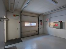 Korkeutta löytyy nosto-ovella varustetusta hallista noin 3 metriä ja nosto-oven korkeus on 2,7 metriä sekä leveys 2,5 metriä. Hallitilasta löytyy noin 18 neliön ovellinen tila ja toinen pienempi tila hallitilan periltä. Lisäksi löytyy minikeittiöllä varustettu tila, erillinen wc, suihkukaappi ja varastokomero. Vesipisteitä hallissa on kaksi ja ulkona on vesiposti. Hallin keskellä on lattiakaivo öljyneroituksella.