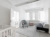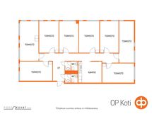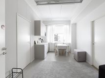 Tila on jaettavissa. Tila on jaettu toimistohuoneiksi