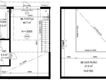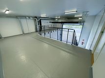 Tilassa on valmiina tilan korkeuden hyödyntävä parvi, taukotila, wc-tila sekä energiaa säästävä ilmalämpöpumppu!