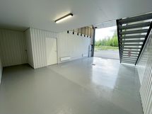 Nosto-oven yläikkunapaneeleista tulviva luonnonvalo, tehokas valaistus, wc ja koneellinen ilmanvaihto lämmön talteenotolla sekä ilmalämpöpumppu huolehtivat miellyttävistä olosuhteista koko päivän. Wc-tilaan on mahdollista myös asentaa suihkukaappi. Pistorasioita on enemmän kuin varastotiloissa – tarpeeksi esimerkiksi IT-laitteille ja työkoneille.