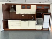 - Keittiön varusteet: Jääkaappipakastin, uuni, liesi, liesituuletin ja astianpesukone. Liesi: Induktioliesi. Työtason materiaali: Laminaatti. Liike/toimistohuoneiston avotilassa hyvin varusteltu keittiö.