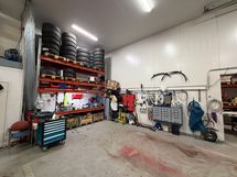 Tila sisältää kaksi korkeaa nosto-ovea, joihin on integroitu kulkuovet. Helppo sisäänajo pakettiautoille ja pienille kuorma-autoille ja muille mahdollisille laitteille. Hallin vapaa sisäkorkeus n. 5 metriä, joten tilaan on mahdollista rakentaa parvi. Epoksipinnoitettu betonilattia, vesipisteet 2 kpl ja rakennettu wc. Tilassa langaton 4g netti. Tilaan on asennettu ilmalämpöpumppu, joka tasaa talven energiankulutusta. Halliin integroituna tällä hetkellä täysin toimiva nelipilarinostin (vrt kuva), joka voidaan jättää uudelle ostajalle kaupanpäälliseksi tai haluttaessa viedä pois. Myös kohteen varastohyllyt neuvoteltavissa. Hallin piha on asfaltoitu. Kohde on tällä hetkellä vuokrattuna, mutta nykyinen vuokralainen muuttaa tarvittaessa 2 kuukauden sopimuksella pois. (Halliin on avattu kulkuaukko viereisen varaston puolelle (vrt. valokuva). Tämä kulkuaukko korjataan asianmukaisesti paloturvallisuusmääräykset huomioiden, kun kauppoihin päästään.)