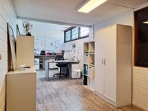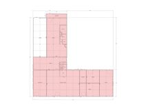 Myytävän alueen (pohjakuvassa punaisella) koko on noin 1’900 m². Se koostuu pääasiassa hallitilasta, jota on osittain jaettu kevyin väliseinin. Rakennuksessa on tuotanto-, varasto- ja harrastetiloiksi sopivien hallien lisäksi myös esimerkiksi myymäläksi soveltuvaa liiketilaa sekä toimisto- ja sosiaalitiloja.