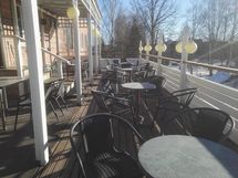 Katutasossa ravintola + keittiö + iso terassi + esiintymislava.