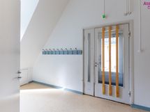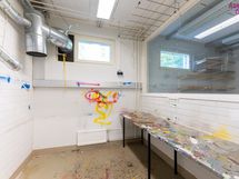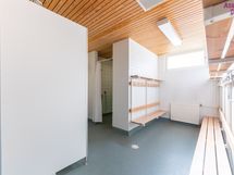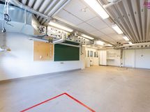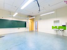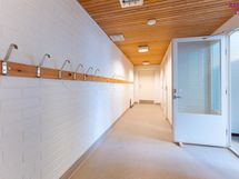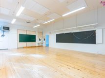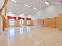 Luokkahuoneita, keittiö, liikuntasali, teknisen luokka, sosiaalitilat, varastohuoneita.
