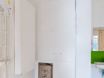 Lattia: Keittiössä: muu. Pesutiloissa: muovi. Erillisessä WC:ssä: muovi. Olohuoneessa: muovi, lauta. Seinät: Keittiössä: kaakeli, maalattu. Pesutiloissa: kaakeli. Erillisessä WC:ssä: kaakeli. Olohuoneessa: maalattu.