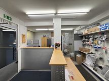 Liikehuoneisto, 1 wc, 2 varastoa, kk, takahuone
