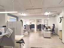 Kunto, varusteet ja palvelut: Hyväkuntoiset tilat. Kaksi toimistohuonetta, avointa tilaa, neuvotteluhuone/taukotila, keittiö, wc, siivouskomero.