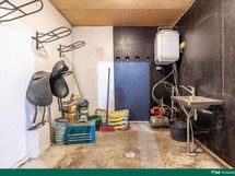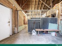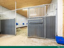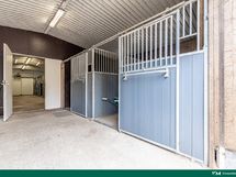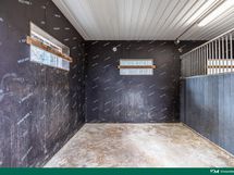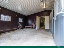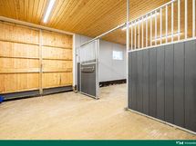 Varustetilat, heinille/kuivikkeille säilytystilaa katon alla.