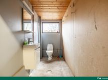 Erillinen wc uudessa tallissa: peili, allaskaappi