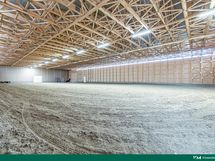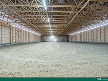 Puurakenteisen v. 2018 valmistuneen maneesin ratsastusala on 23x45m. Pohjana hiekka/kuituseos.