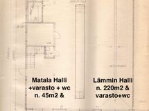 Lisäksi matalaa hallia + varasto + wc n.45m2.