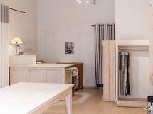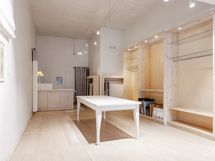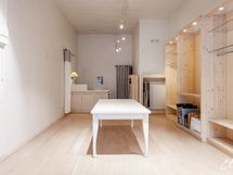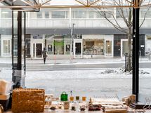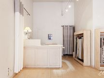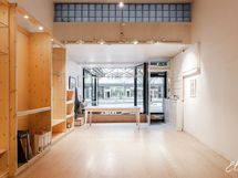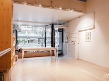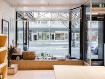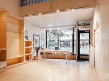 Pitkänmallinen ja selkeä pohjaratkaisu tekee tilasta monikäyttöisen. Liiketilan etuosa on noin 44 m² ja lisäksi käytössä on noin 10 m²:n takahuone sekä wc. Korkea ja avara tila tuo ilmavuutta ja mahdollistaa näyttävät esillepanot. Erkkerimallinen näyteikkuna tuo runsaasti luonnonvaloa sisään ja näkyy useaan suuntaan, mikä lisää liikkeen huomioarvoa. Korotetulle näyteikkunalle on helppo rakentaa näyttäviä kokonaisuuksia ja tila hurmaa myös persoonallisilla yksityiskohdillaan, kuten tilan yläosassa sijaitsevalla lasitiilistä muodostuvalla ikkunalla.