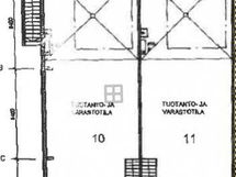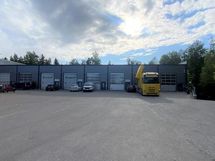 Kaksi katutason nosto-ovellista hallitilaa öljyn- ja hiekanerotuskaivolla, toinen tila on 139m2 ja toinen 133m2 yhteensä 272m2, tiloja erottaa väliseinä. Tilojen vapaa korkeus on 5m. Tilojen takaosaaan on rakennettu toimistoa kahteen tasoon. 139m2 tilan alakerrasta löytyy toimiston yhteydestä keittiö. Alhaalla myös wc, ja suihkutila.
