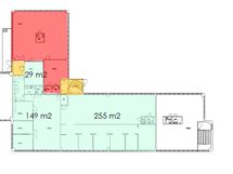 Tila jaettu nyt kolmeen osaan 149 m2, 171 m2 ja 255 m2