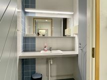 Lattiamateriaalien kuvaus: Lattioissa laatoitus tai muovimatto. Seinät pääosin maalattua laskuitutapettia. .