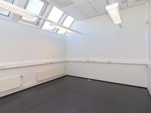 Tila on jaettavissa. Toimistohuoneita on pitkän käytävän varrella.