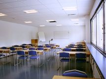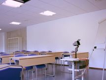 Edustava ja siisti koulutustila rakennuksen toisessa kerroksessa. Sopii myös toimistokäyttöön.