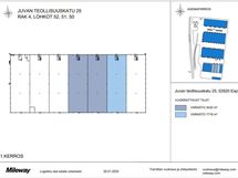 Nykyajan vaatimukset täyttävää logistiikkatilaa, vapaa korkeus n. 8,5 m. Nosto-ovi * 4 katetulle lastauslaiturille (lastauskorkeus), takaovi (3,9 m x 4,5 m) maantasossa. Lattiakantavuus 3 000 kg/m², pistekuormakestävyys 5 000 kg/m