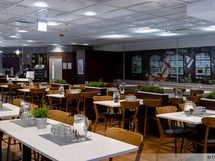 Henkilöstöravintola, vuokrattavia neuvottelutiloja, pysäköintihalli / -katos, vastaanotto, sauna