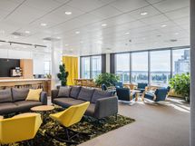 Koko siiven kattava, näyttävä toimistotila tarjoaa tilaa jopa 88 työpisteelle ja inspiroivan ympäristön tehokkaaseen työskentelyyn. Ikkunat avautuvat kolmeen ilmansuuntaan, tuoden runsaasti luonnonvaloa ja avaruutta – ilman seinänaapureita tilassa vallitsee rauhallinen ja keskittynyt tunnelma. Tilassa on kuusi neuvotteluhuonetta, neljä vetäytymistilaa sekä tyylikäs cafe/lounge-alue, joka kutsuu kohtaamisiin ja taukohetkiin. Tämä kokonaisuus yhdistää toiminnallisuuden, viihtyisyyden ja edustavuuden ainutlaatuisella tavalla.