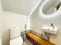 Erillisen WC:n kuvaus: peili. Varustus: bidee-suihku.