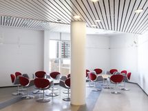 Monitilatoimisto Soinnun A-talossa, josta näkymät avautuvat kauppakeskus Sellon suuntaan sekä pohjoiseen puistoon päin. Tilaan ei tehdä muutostöitä.