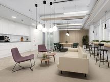 Vuokrattavana 4. kerroksen 231 m2 toimistotila Stella Business Parkin NOVA -talosta. Sisävalokuvat ovat esimerkkejä kiinteistön tiloista.
