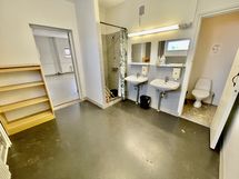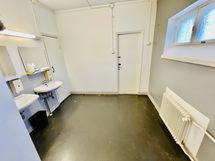 Toimitilakokonaisuus n. 72 m2 vuokrattavana sisältäen: - Varastotila n. 62 m2 (pituus 10,5 m, leveys 5,8 m, korkeus n. 2,8 m) - Varastotilan takanurkassa toimistokoppi n. 4,5 m2, joka voidaan tarvittaessa purkaa pois. - Pukuhuone + suihku + wc n. 10 m2
