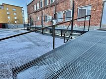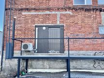 Varastotilassa normaalikokoinen ulko-ovi. Portaat ja ramppi maantasolta sisään. Ei autolla sisäänajoa.