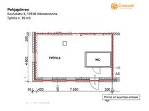 Tilaratkaisu sisältää: - oma sisäänkäynti - työtila n. 32,5 m2 - WC n. 2,5 m2