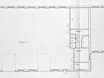 - hallissa lisäksi wc, pukuhuone, taukotila, varasto ja pieni parvivarasto