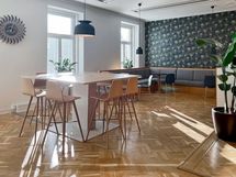 Työskentely sijoittuu rakennuksen kahteen ylimpään kerrokseen, joissa klassinen arkkitehtuuri kohtaa modernin ja värikkään sisustuksen. Nämä tilat on luotu edistämään verkostoitumista ja luovaa yhteistyötä, tarjoten samalla vaikuttavat puitteet kokouksille upeilla kaupunkinäkymillä. Ympäristö on yhtä aikaa ammattimainen ja rento, mikä tukee tehokasta ja miellyttävää työpäivää.