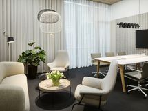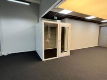 Tilassa valmiina myös myös kaksi vetäytymistilaa (puhelinkoppi ja 2-3 hlö Teams-tila), jotka vuokralaisen käytettävissä. Samoin pieni oma keittiö, kaksi vessaa ja pieni varastohuone löytyy.