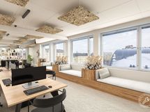 Valoisa toimisto tarjoaa viihtyisää tilaa työskentelylle. Tämä toimisto on laajalti avokonttoria, jota täydentävät kaksi työhuonetta sekä neuvotteluhuone. Päivän kulkua sujuvoittavat omat wc-tilat sekä taukokeittiö. Toimisto on siistissä kunnossa, ja sen kahdelle seinustalle sijoittuvat suuret ikkunat päästävät sisään runsaasti luonnonvaloa.