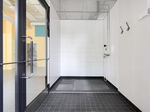 Vuokrattava tila on valoisa 209m² liiketila yhdessä tasossa, jossa on aiemmin ollut päiväkoti. Tilan keittiö täysin varusteltu sisältäen ammattikäyttöön soveltuvan astianpesukoneen ja toisessa tuulikaapissa 2 kuivauskaappia. Tila jaettu tällä hetkellä lasiovilla kahtia ja molempiin tiloihin oma sisäänkäynti. Tila soveltuu hyvin myös muuhun liiketoimintaan pienin muutoksin. Isot ikkunat kadulle koko tilan leveydellä luovat näkyvyyttä. Raitiovaunu- ja bussipysäkit ihan kulman takana.