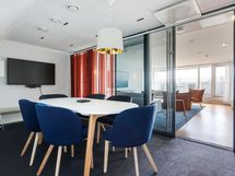 Ilmoituksen kuvat ovat kiinteistön muista toimistoista sekä sen kokouskeskuksesta ja edustustiloista joita voi tuntiperusteisesti vuokrata.