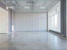 LAADUKKAAT MATERIAALIT Yhdellä liiketilan seinällä on musta-valkoinen design-kalanruototapetti, toisella seinällä tyylikäs vaalea puupanelointi, joka tuo tilaan lämpöä. Muut liiketilan seinät on maalattu rauhoittavan siniharmaiksi. Lattia on loft-henkisesti kiillotettua, eläväpintaista harmaata sementtiä. Tila on hyvässä kunnossa ja siisti. Talo on muutaman vuoden vanha, valmistunut vuonna 2020.