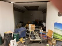 Vapaana pohjakerroksen varastotila 92 m2. Sisäänajettava pakulla tilan eteen ajoluiskaa pitkin. Tila on sisäkuvasta poiketen L-muotoinen. Vuokraan lisätään alv.